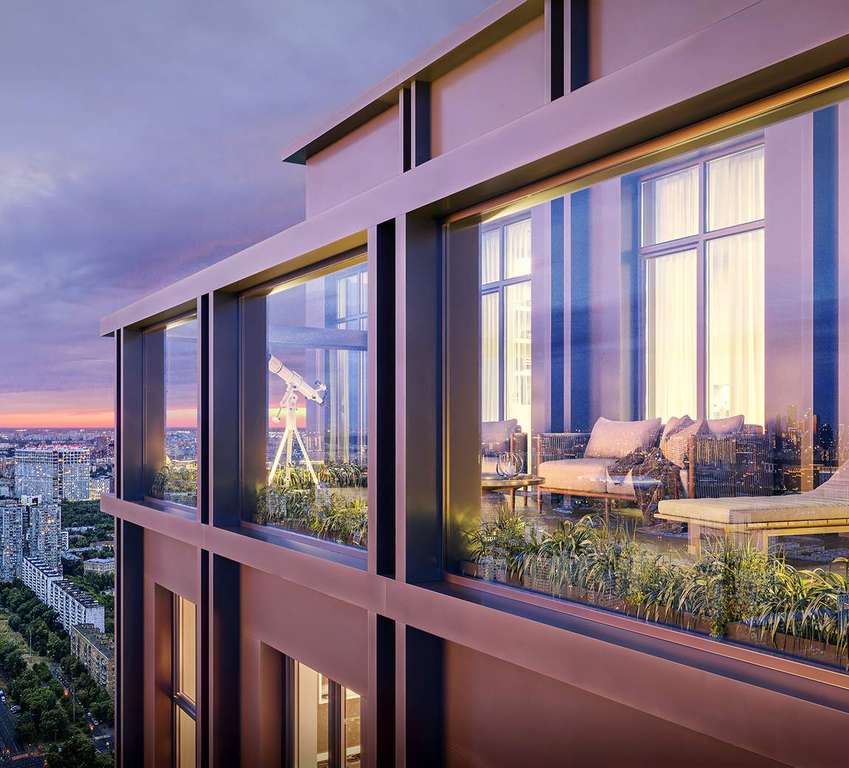 Квартира располагается на 20 этаже 44-этажного дома в ЖК Среда на Кутузовском.