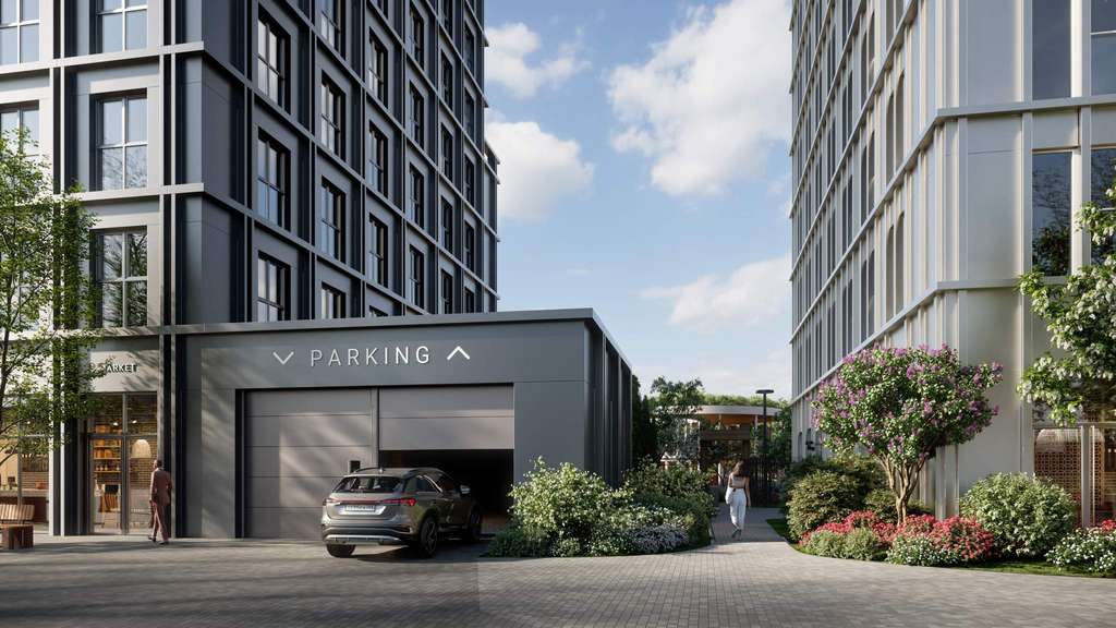 Отдельная многоуровневая парковка. Инфраструктура: детские площадки, спортивные площадки.