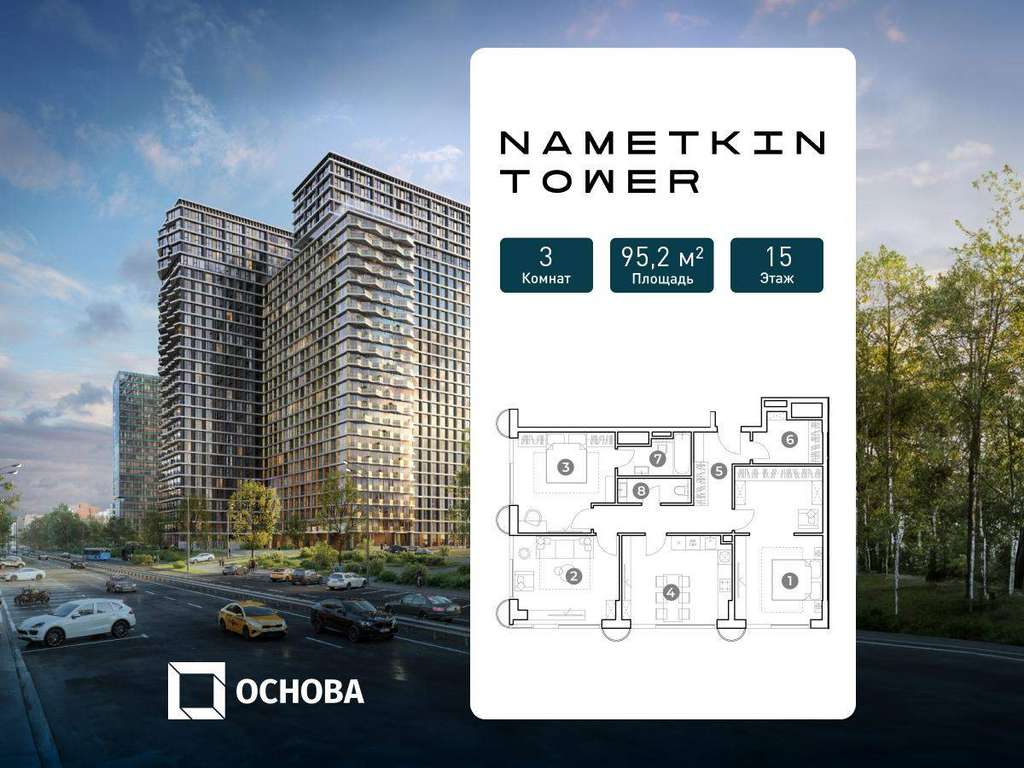 Продаются 3-к апартаменты площадью 95.2 кв. м. на 15-м этаже 29 этажного дома в "NAMETKIN TOWER" от ГК ОСНОВА.