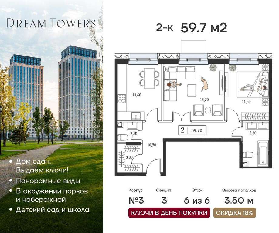 ЖК Dream Towers проект премиум-класса в окружении парков и набережной, с полностью готовой инфраструктурой для комфортной жизни и отдыха.
