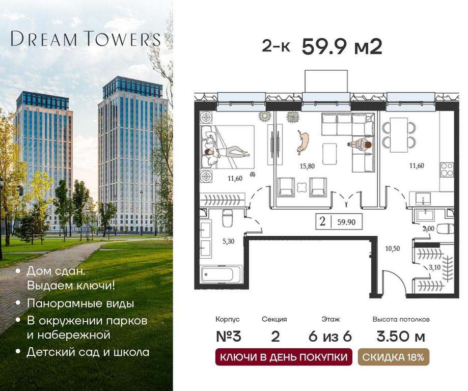 ЖК Dream Towers проект премиум-класса в окружении парков и набережной, с полностью готовой инфраструктурой для комфортной жизни и отдыха.