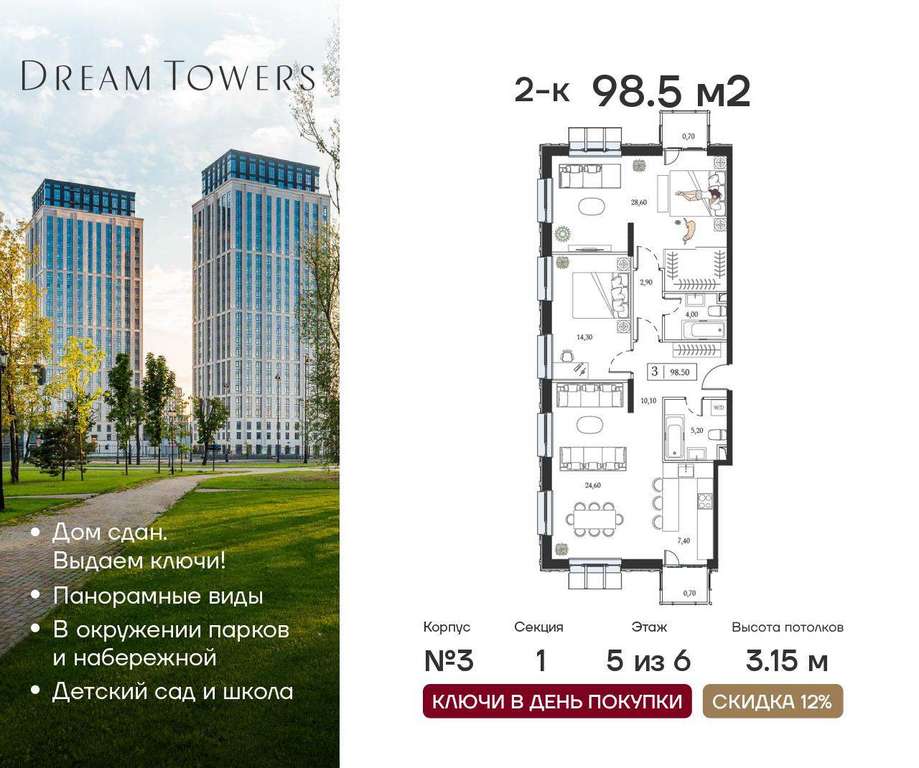 ЖК Dream Towers проект премиум-класса в окружении парков и набережной, с полностью готовой инфраструктурой для комфортной жизни и отдыха.