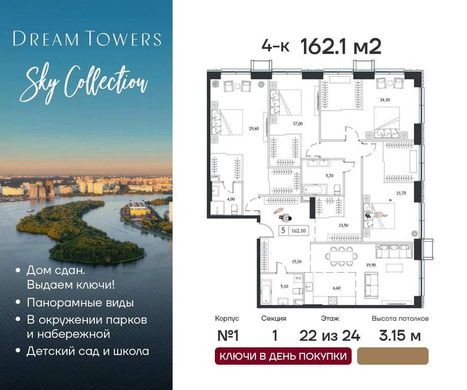 ЖК Dream Towers проект премиум-класса в окружении парков и набережной, с полностью готовой инфраструктурой для комфортной жизни и отдыха.