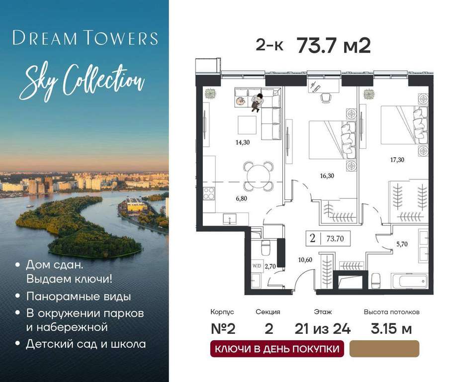 ЖК Dream Towers проект премиум-класса в окружении парков и набережной, с полностью готовой инфраструктурой для комфортной жизни и отдыха.