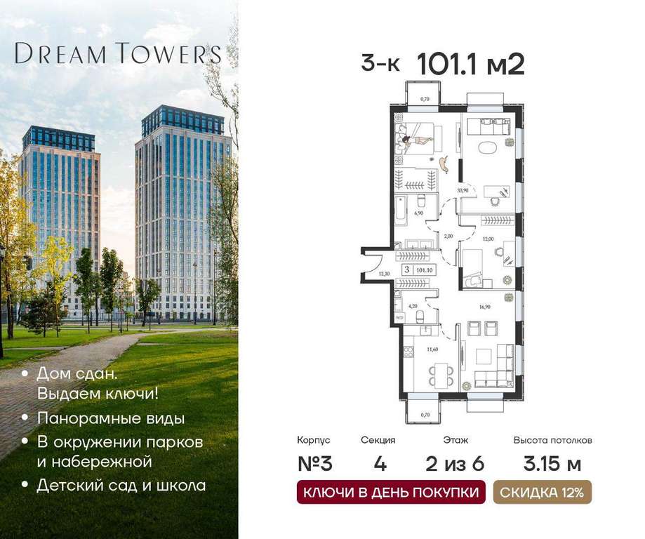 ЖК Dream Towers проект премиум-класса в окружении парков и набережной, с полностью готовой инфраструктурой для комфортной жизни и отдыха.