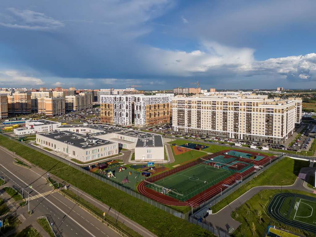 Часть домов уже сдана, на территории открыты две школы и три детских сада, а в будущем будет построена поликлиника, ТЦ, еще одна школа и три детских сада.