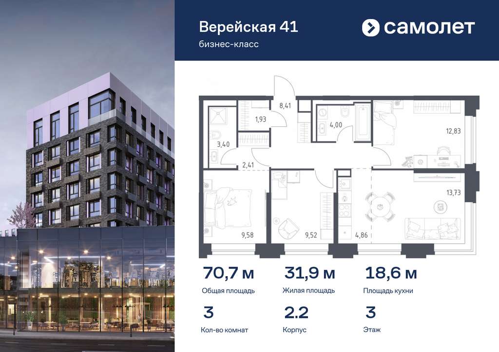 | Адрес | ЖК Верейская 41, 2.2Объект на карте |