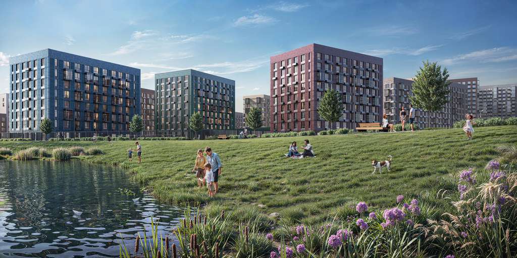 Дворы-парки закрыты от машин и посторонних. На территории — прогулочный маршрут вдоль реки Незнайка и набережная с шезлонгами и качелями для отдыха. Также здесь появится плейхаб «Незнайка на Луне», площадь для мероприятий с сухим фонтаном, летним кинотеатром и кафе.