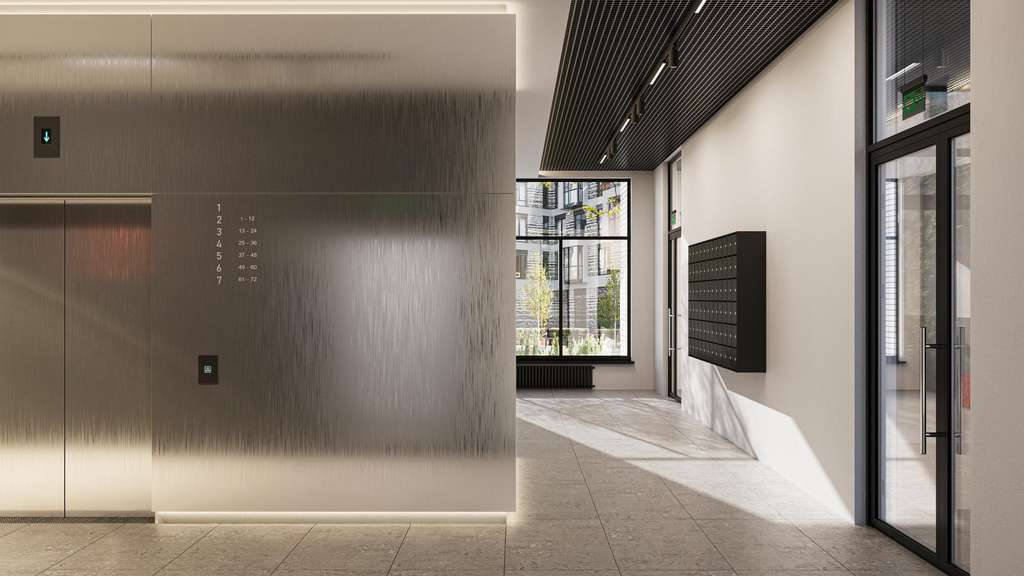 Высота домов — от 5 до 15 этажей. Фасады выполняют в естественных оттенках, в соответствии с дизайн-кодом «Полевой луг». У каждой секции — свое цветовое решение. Белый цвет верхних этажей добавляет застройке легкости. Фасады облицованы клинкерным глазурованным кирпичом, который используют в проектах бизнес-класса.