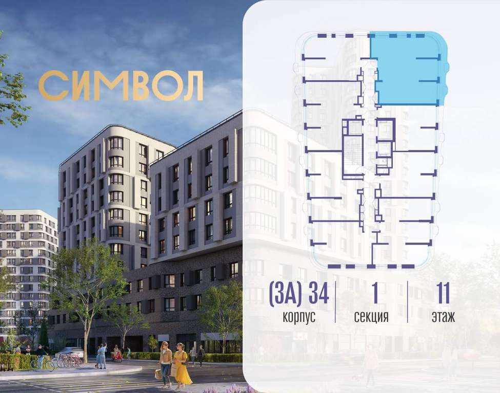 Продается 3-комнатная квартира от застройщика: общая площадь 82.80 м, жилая 40.60 м, кухня 17.30 м, 11-й этаж, жилой квартал «Вдохновение», корпус 34 (секция 1) . Срок сдачи: 4 квартал 2027 года.