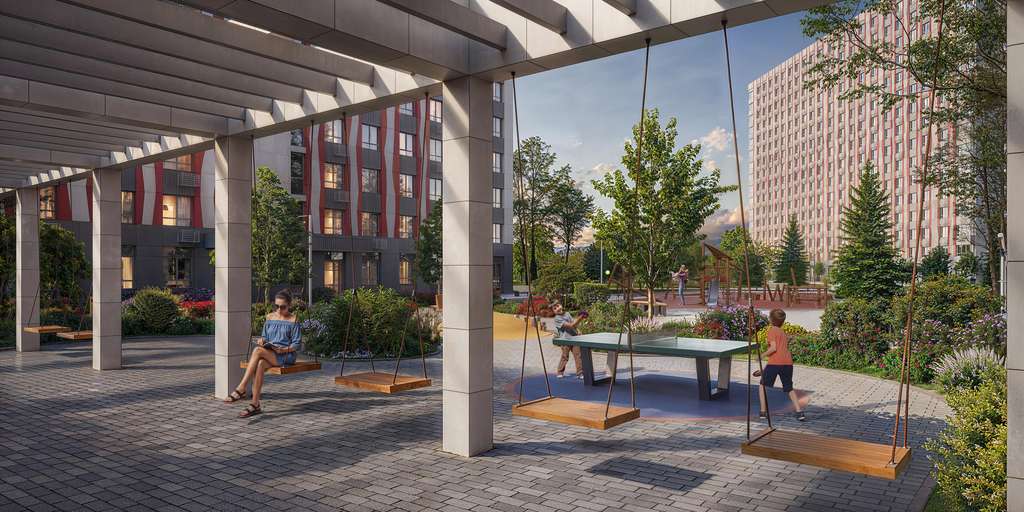 Предусмотрены современные детские площадки для ребят всех возрастов, воркаут-зона, площадка для выгула и тренировки собак. Любители спортивных игр оценят баскетбольную площадку и столы для настольного тенниса.