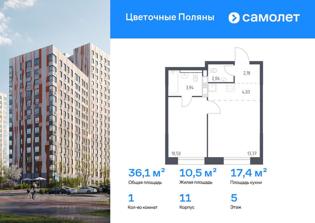 Строим кварталы для жизни с заботой о будущем. Предлагается 1-комнатная квартира комфорт-класса 36,08 кв. м в корпусе 11 на 5 этаже, в ЖК «Цветочные Поляны»