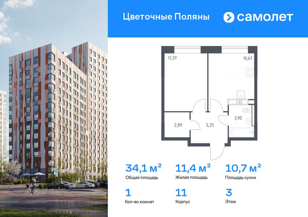Строим кварталы для жизни с заботой о будущем. Предлагается 1-комнатная квартира комфорт-класса 34,08 кв. м в корпусе 11 на 3 этаже, в ЖК «Цветочные Поляны»