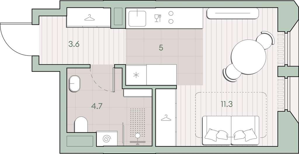 Жилая площадь 11.3 м2, кухня 5 м2, предчистовая отделка, комнаты изолированные.