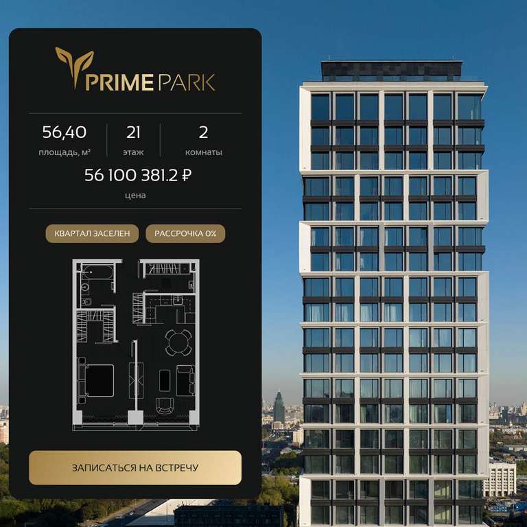 Квартира располагается на 21 этаже 41-этажного дома в ЖК Прайм Парк.