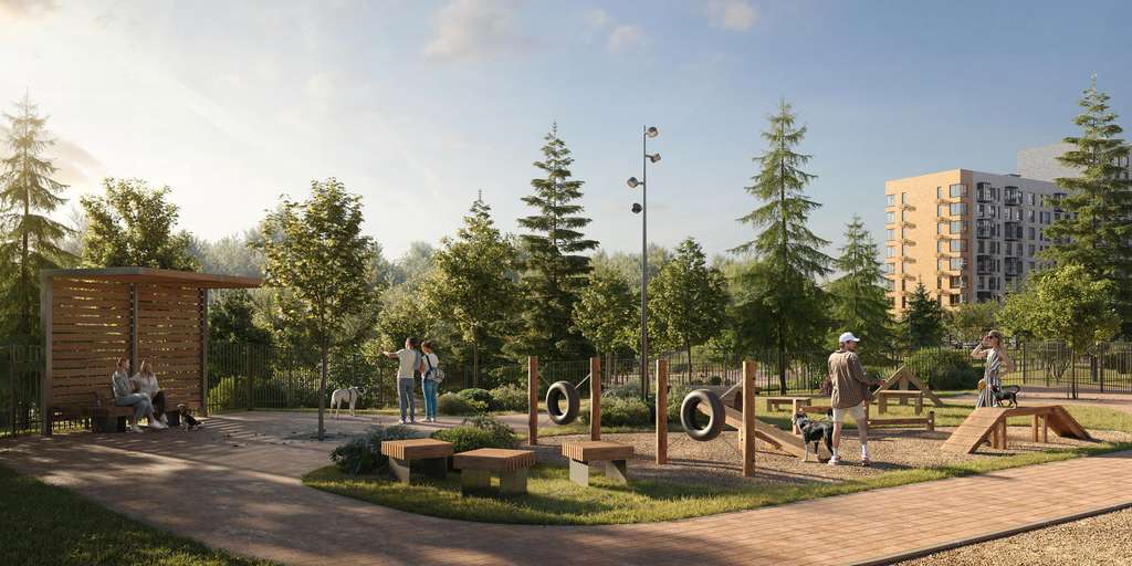 Дворы-парки будут радовать жителей цветением и зеленью: здесь высадят липы, сосны, ели, клены и сирень. Плэйхаб станет местом встреч всех любителей активного отдыха: застройщик оборудует зоны тренажеров и воркаута, площадки для игр в настольный теннис, мяч, шахматы. Также появятся современные игровые площадки для детей.