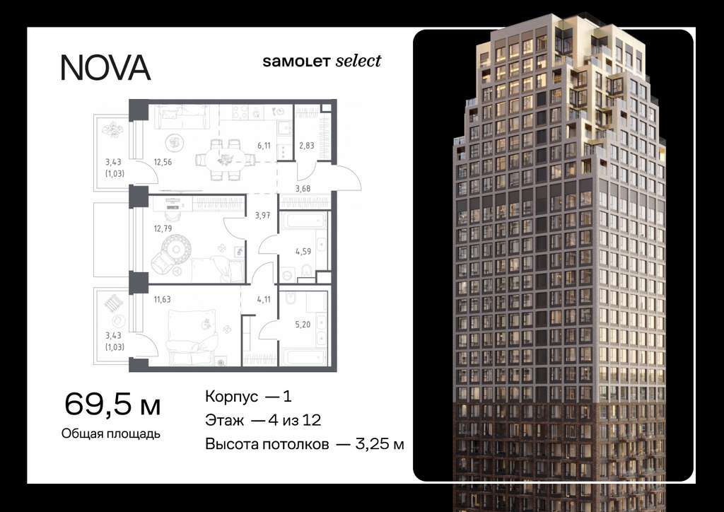 Строим кварталы для жизни с заботой о будущем. Предлагается 2-комнатная квартира премиум-класса 69,53 кв. м в корпусе 1 на 4 этаже, в ЖК «NOVA»