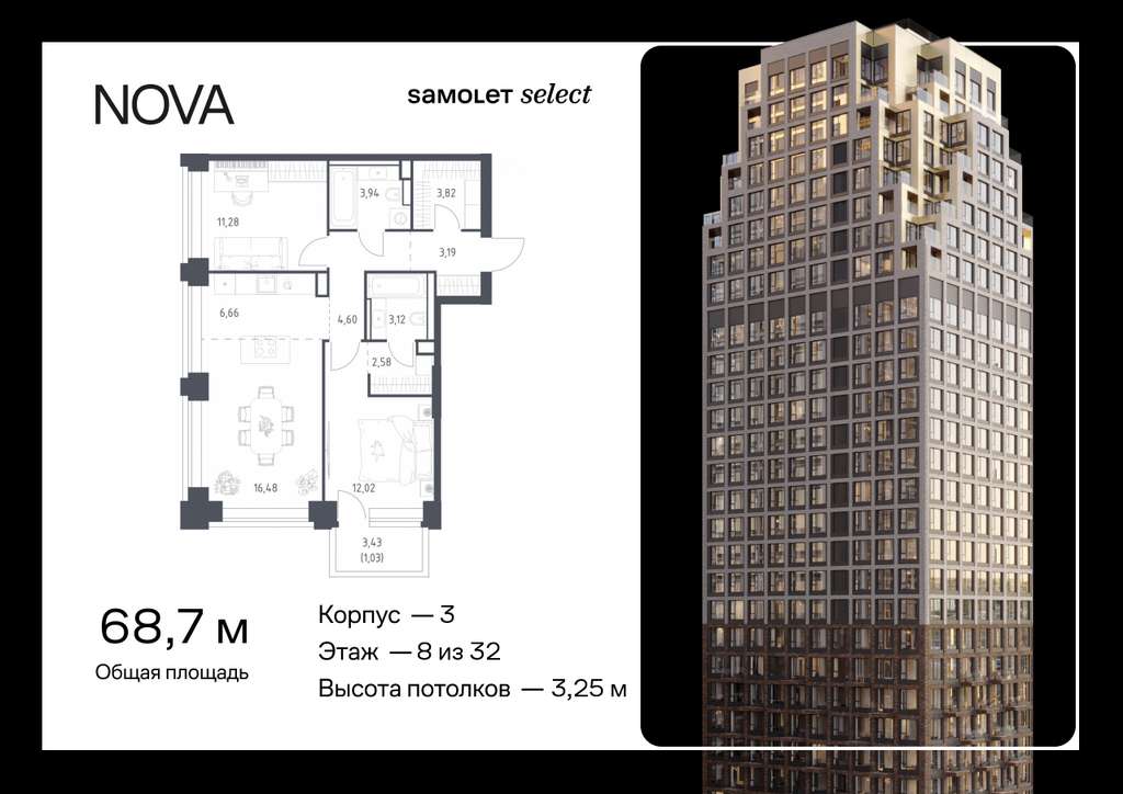 Строим кварталы для жизни с заботой о будущем. Предлагается 2-комнатная квартира премиум-класса 68,72 кв. м в корпусе 3 на 8 этаже, в ЖК «NOVA»