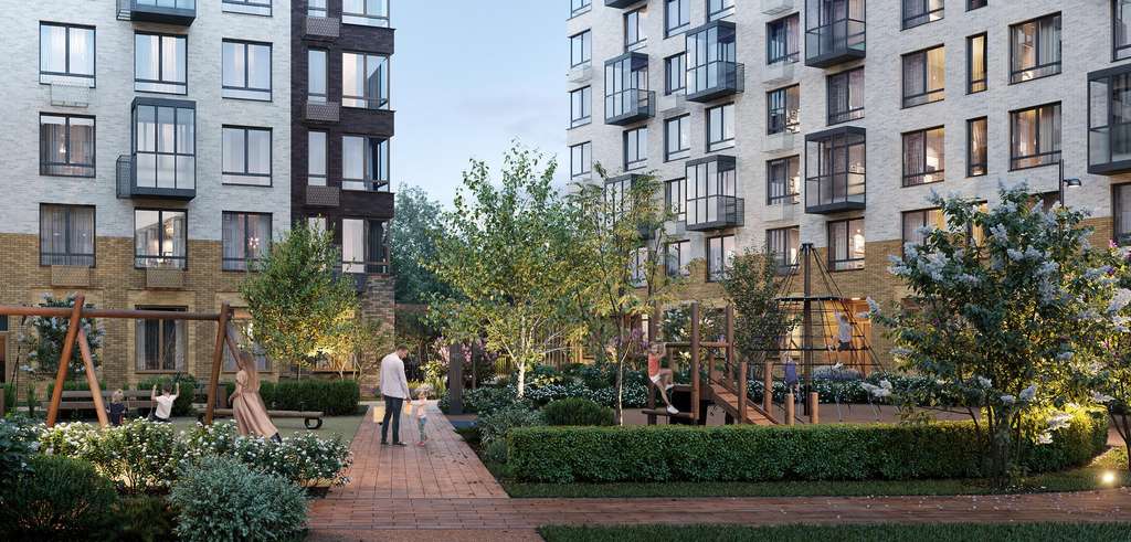Дворы-парки будут радовать жителей цветением и зеленью: здесь высадят липы, сосны, ели, клены и сирень. Плэйхаб станет местом встреч всех любителей активного отдыха: застройщик оборудует зоны тренажеров и воркаута, площадки для игр в настольный теннис, мяч, шахматы. Также появятся современные игровые площадки для детей.