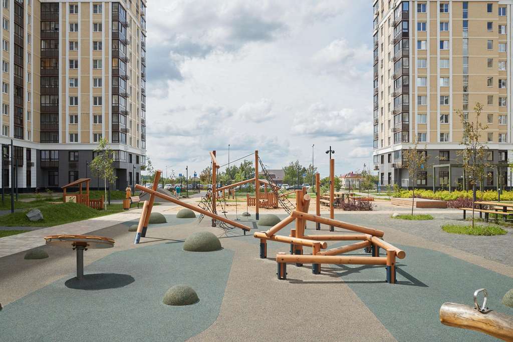 Дворы — приватные мини-парки без машин и посторонних. Кроме игровых площадок, для детей обустроили тематический плейхаб «Маяк». В будущем появятся плейхаб «Алиса в стране чудес», арт-объект «Тропа зеркал», а также большой ландшафтный парк.