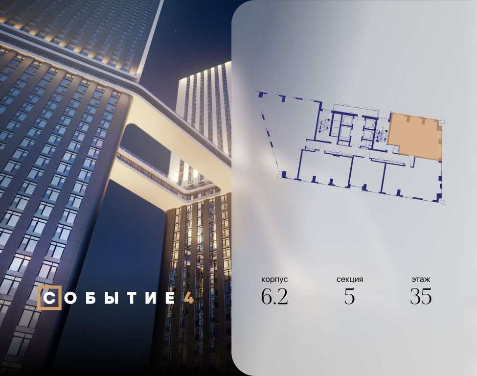 Продаётся 3-комнатная квартира от застройщика: общая площадь 77.10 м, жилая 41.90 м, кухня 17.70 м, 35-й этаж, жилой квартал «Событие-6», корпус 2 (секция 5) Срок сдачи: 1 квартал 2029 года.