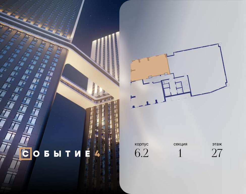 Продаётся 3-комнатная квартира от застройщика: общая площадь 97.50 м, жилая 46.50 м, кухня 27.50 м, 27-й этаж, жилой квартал «Событие-6», корпус 2 (секция 1) Срок сдачи: 1 квартал 2029 года.