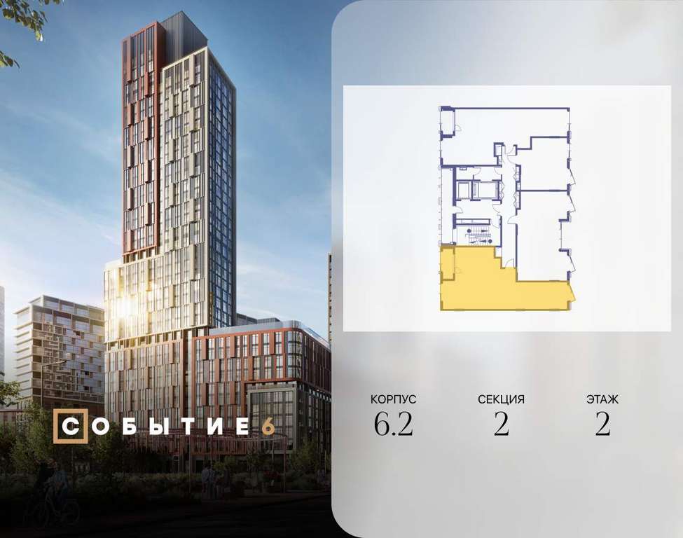 Продаётся 2-комнатная квартира от застройщика: общая площадь 74.60 м, жилая 33.00 м, кухня 18.30 м, 2-й этаж, жилой квартал «Событие-6», корпус 2 (секция 2) Срок сдачи: 1 квартал 2029 года.