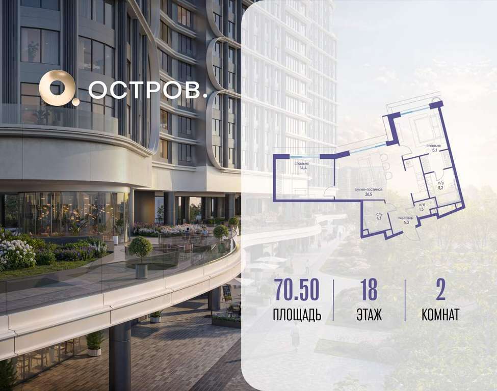 Продаётся 2-комн. квартира от застройщика: общая площадь 70.50 м, жилая 29.50 м, кухня 26.50 м, 18-й этаж, жилой квартал «Остров 7», корпус 7 (секция 1) . Срок сдачи: 3 квартал 2028 года.