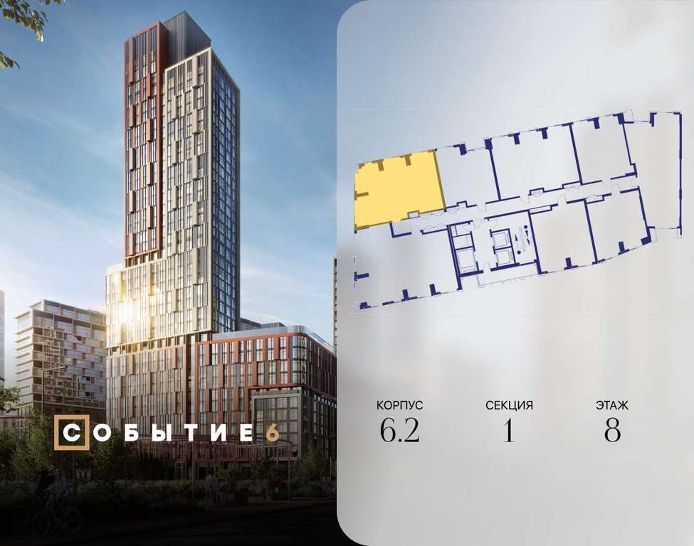 Продаётся 2-комнатная квартира от застройщика: общая площадь 74.20 м, жилая 28.60 м, кухня 26.40 м, 8-й этаж, жилой квартал «Событие-6», корпус 2 (секция 1) Срок сдачи: 1 квартал 2029 года.