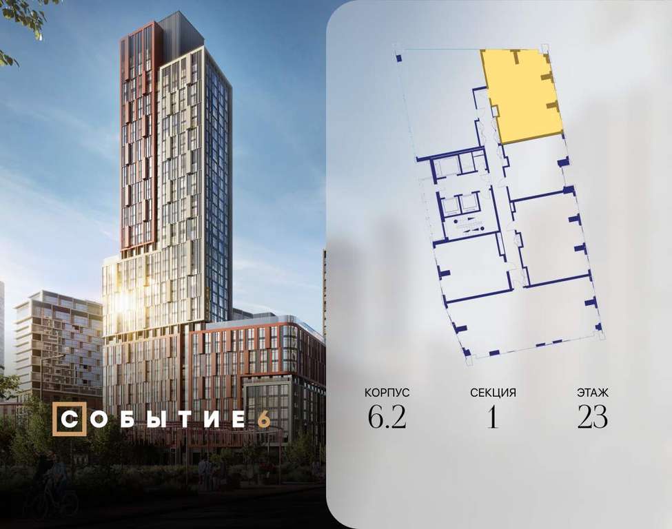 Продаётся 2-комнатная квартира от застройщика: общая площадь 74.70 м, жилая 29.10 м, кухня 25.60 м, 23-й этаж, жилой квартал «Событие-6», корпус 2 (секция 1) Срок сдачи: 1 квартал 2029 года.