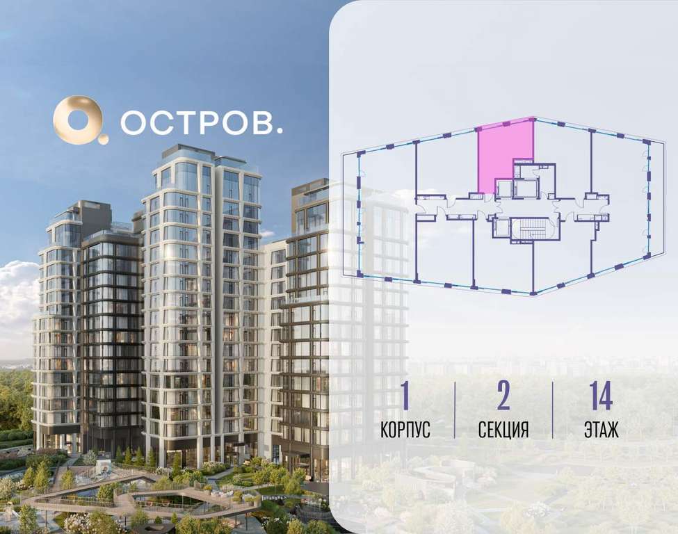 Продаётся квартира от застройщика: общая площадь 37.60 м, жилая 22.70 м, кухня 5.00 м, 14-й этаж, жилой квартал «Остров 12», корпус 1 (секция 2) . Срок сдачи: 1 квартал 2029 года.