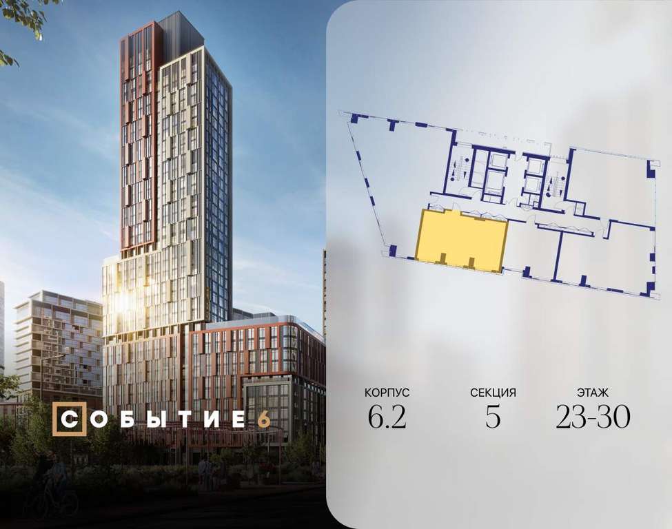 Продаётся 2-комнатная квартира от застройщика: общая площадь 61.80 м, жилая 32.90 м, кухня 17.80 м, 23-й этаж, жилой квартал «Событие-6», корпус 2 (секция 5) Срок сдачи: 1 квартал 2029 года.
