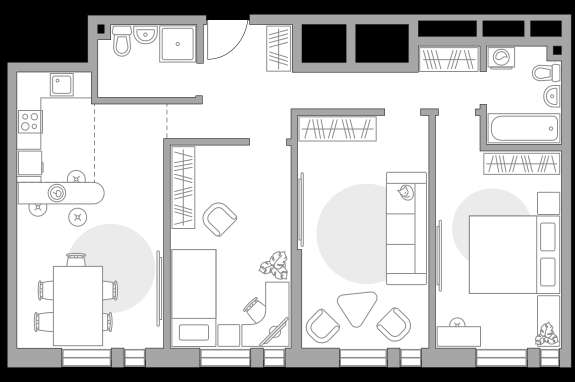 Жилая площадь 62.3 м2, кухня 4.4 м2. Площадь комнат: 17.00/16.90/14.80/13.60 м2, чистовая отделка, окна выходят во двор.