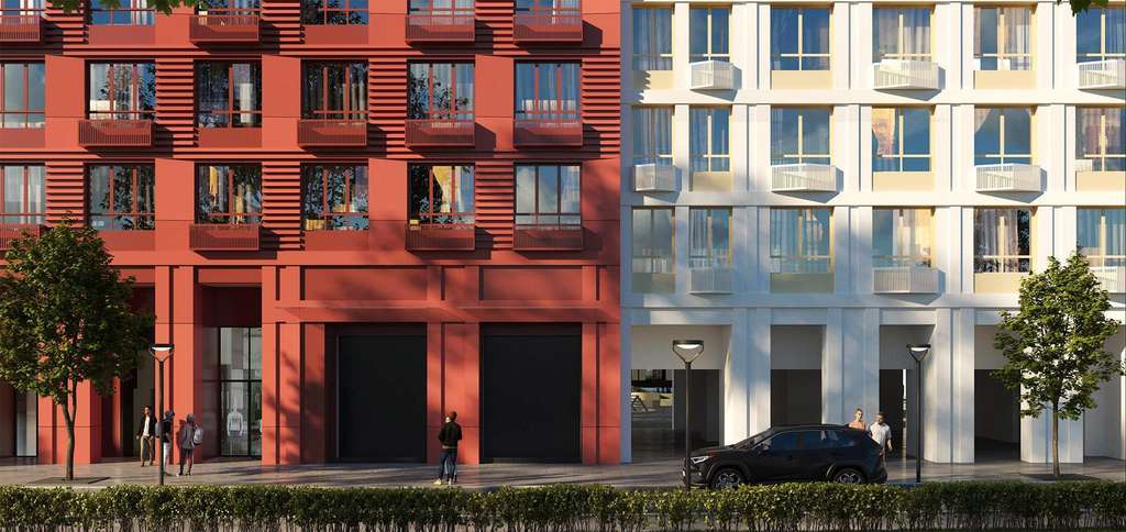 Разновысотные здания придают динамику архитектуре и выделяют жилой комплекс среди другой застройки. В концепции проекта используются вентилируемые фасады с металлическими панелями и декоративной штукатуркой. Каждая секция имеет свой характер и цветовое решение. Покупателям предлагаются лоты с увеличенным остеклением и несколькими видами балконов.