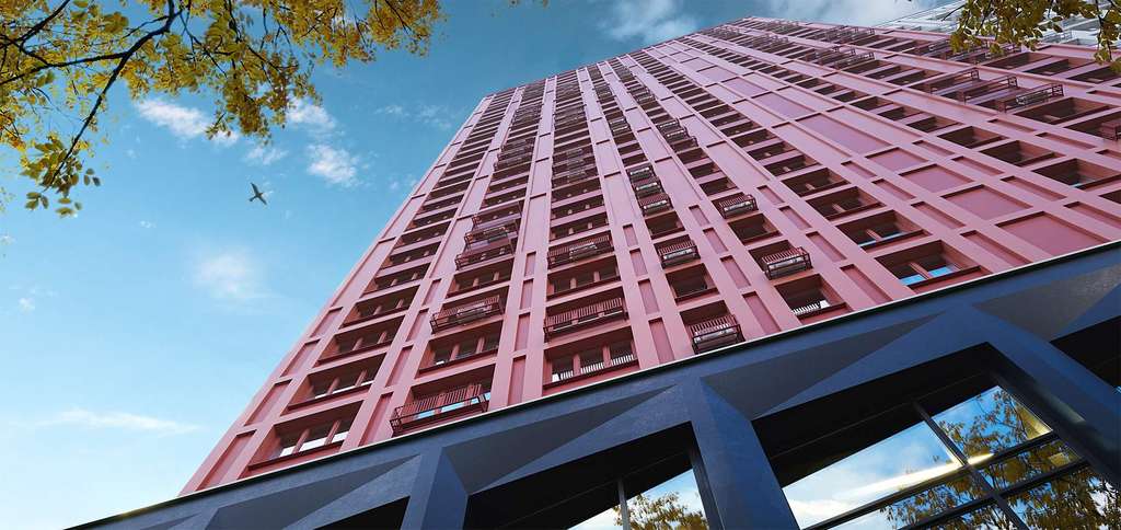 Разновысотные здания придают динамику архитектуре и выделяют жилой комплекс среди другой застройки. В концепции проекта используются вентилируемые фасады с металлическими панелями и декоративной штукатуркой. Каждая секция имеет свой характер и цветовое решение. Покупателям предлагаются лоты с увеличенным остеклением и несколькими видами балконов.