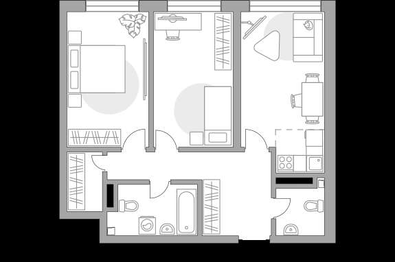 Жилая площадь 43.3 м2, кухня 2.97 м2. Площадь комнат: 14.68/14.51/14.11 м2, квартира без отделки, окна выходят на улицу.