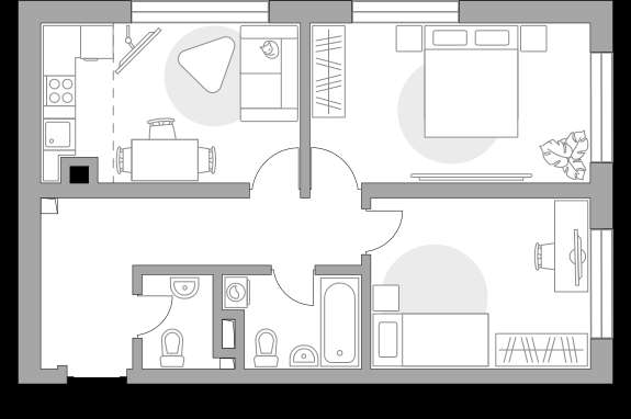 Жилая площадь 39.89 м2, кухня 4.03 м2. Площадь комнат: 16.30/12.54/11.05 м2, квартира без отделки, окна выходят на улицу.