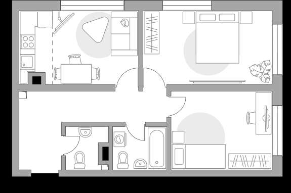Жилая площадь 36.32 м2, кухня 3.67 м2. Площадь комнат: 14.35/11.84/10.13 м2, квартира без отделки, окна выходят на улицу.