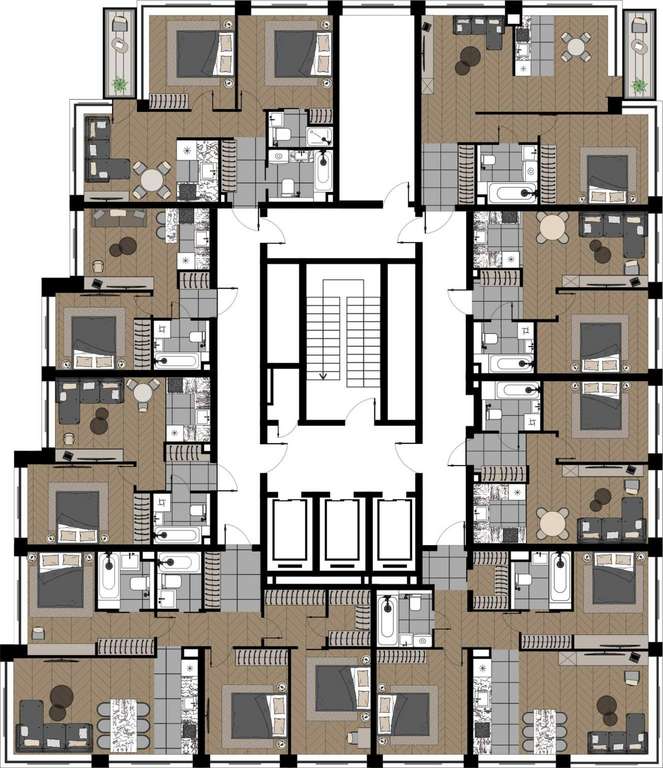 Квартиры с просторными террасами - выход на свежий воздух прямо из дома, гармония природы и городской роскоши.