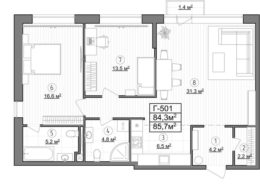 В продаже евротрехкомнатные апартаменты в ЖК LES, расположенном на границе Битцевского лесопарка.