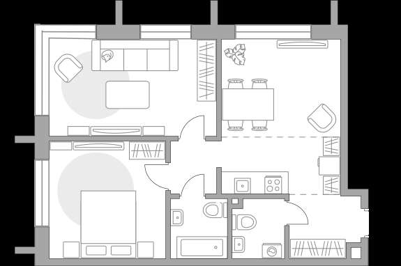 Жилая площадь 30.53 м2, кухня 18.65 м2. Площадь комнат: 16.51/14.02 м2, черновая отделка, окна выходят на улицу.