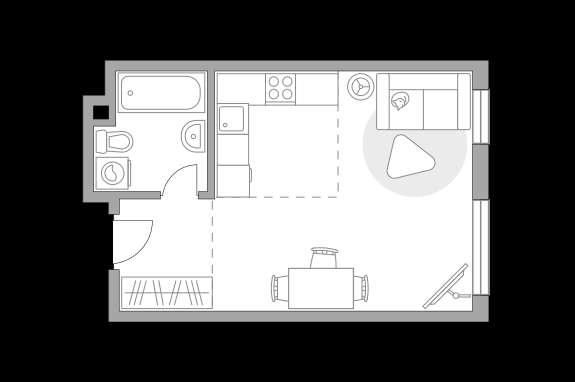 Жилая площадь 18.34 м2, кухня 6.21 м2, квартира без отделки, комнаты смежные, окна выходят на улицу.
