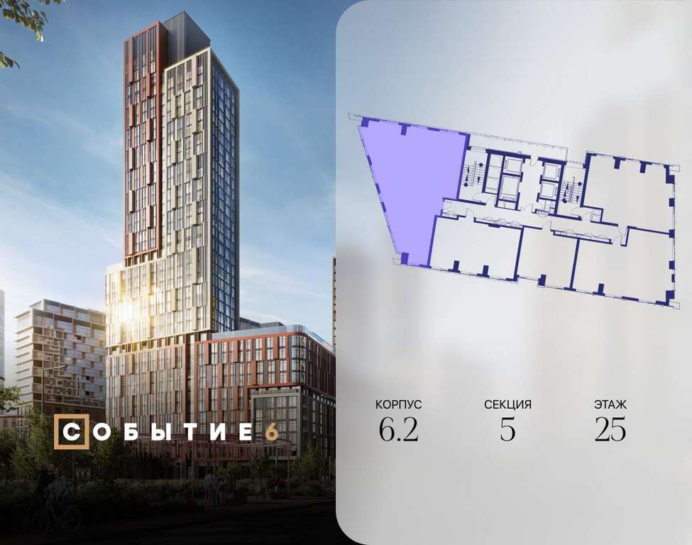 Продаётся 4-комнатная квартира от застройщика: общая площадь 130.90 м, жилая 59.90 м, кухня 28.20 м, 25-й этаж, жилой квартал «Событие-6», корпус 2 (секция 5) Срок сдачи: 1 квартал 2029 года.