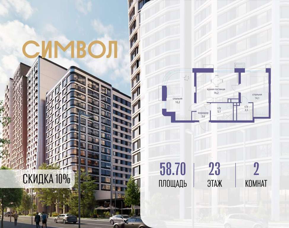 Продается 2-комнатная квартира от застройщика: общая площадь 58.70 м, жилая 30.30 м, кухня 16.20 м, 23-й этаж, жилой квартал «Гордость», корпус 36 (секция 2) . Срок сдачи: 2 квартал 2029 года.