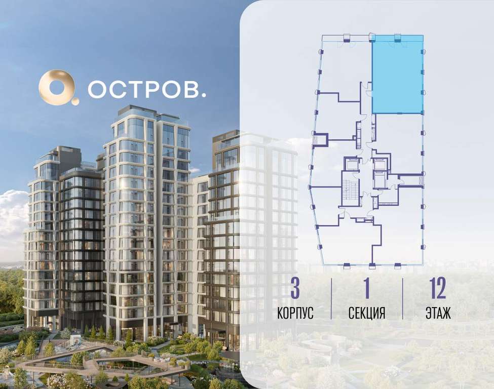Продаётся 3-комн. квартира от застройщика: общая площадь 101.80 м, жилая 43.70 м, кухня 29.10 м, 12-й этаж, жилой квартал «Остров 12», корпус 3 (секция 1) . Срок сдачи: 1 квартал 2029 года.