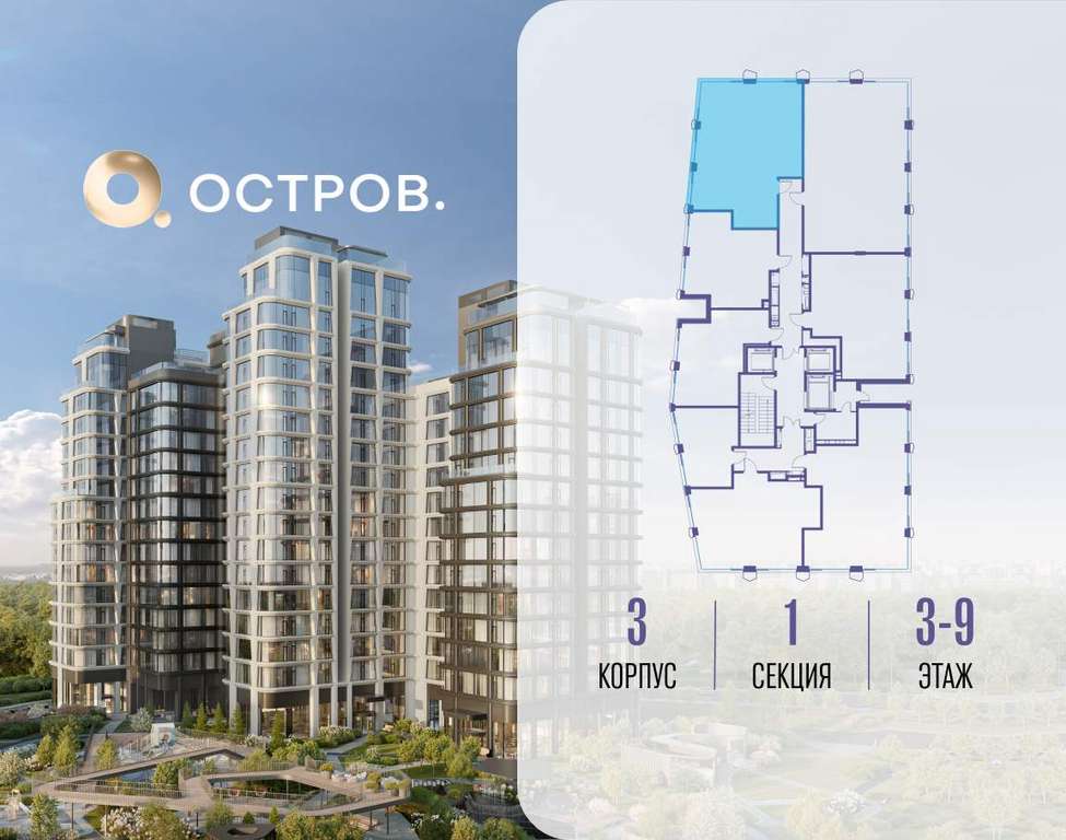 Продаётся 3-комн. квартира от застройщика: общая площадь 87.60 м, жилая 38.50 м, кухня 21.60 м, 9-й этаж, жилой квартал «Остров 12», корпус 3 (секция 1) . Срок сдачи: 1 квартал 2029 года.