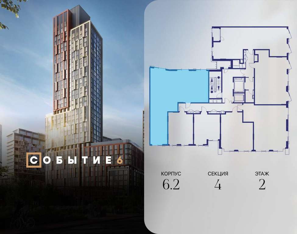 Продаётся 3-комнатная квартира от застройщика: общая площадь 109.70 м, жилая 42.40 м, кухня 23.80 м, 2-й этаж, жилой квартал «Событие-6», корпус 2 (секция 4) Срок сдачи: 1 квартал 2029 года.