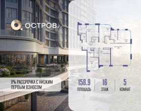 Продаётся 4-комн. квартира от застройщика: общая площадь 164.80 м, жилая 67.20 м, кухня 41.40 м, 11-й этаж, жилой квартал «Остров 12», корпус 6 (секция 1) . Срок сдачи: 1 квартал 2029 года.