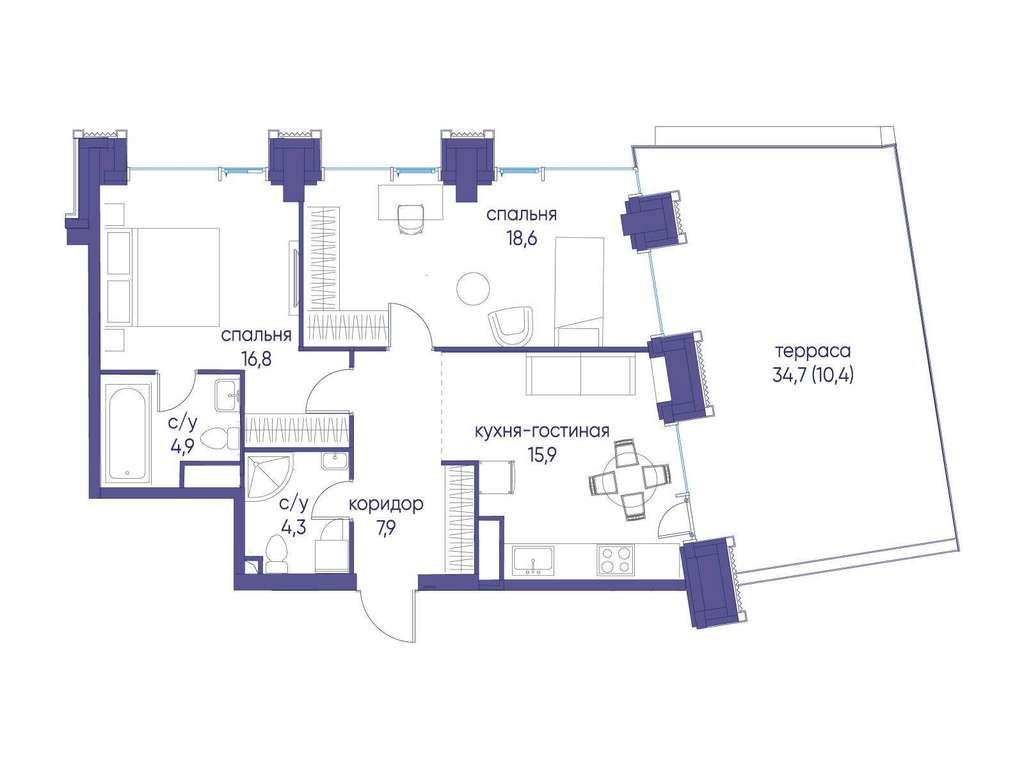Продаётся 2-комнатная квартира от застройщика: общая площадь 78.80 м, жилая 35.40 м, кухня 15.90 м, 12-й этаж, жилой квартал «Событие-6», корпус 2 (секция 5) Срок сдачи: 1 квартал 2029 года.