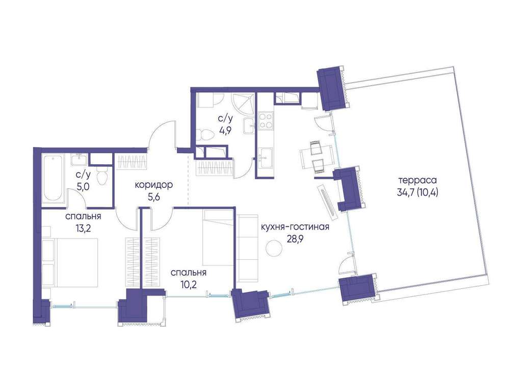Продаётся 2-комнатная квартира от застройщика: общая площадь 78.20 м, жилая 23.40 м, кухня 28.90 м, 12-й этаж, жилой квартал «Событие-6», корпус 2 (секция 5) Срок сдачи: 1 квартал 2029 года.